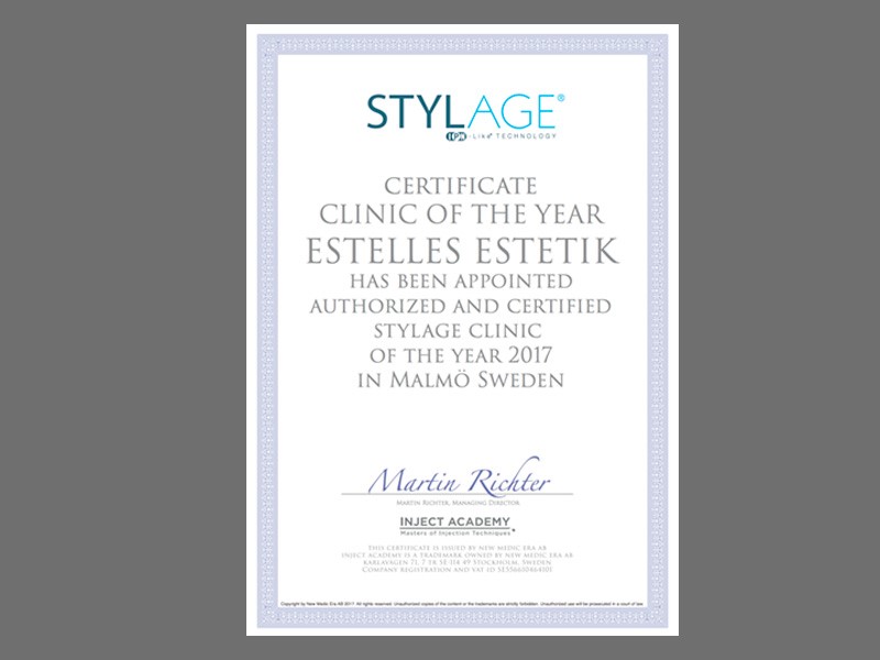Vi är mycket stolta över att blivit utsedda till årets bästa Stylage klinik i Malmö! "För hårt arbete och aldrig kompromissat på kvaliteten har Estelles Estetik blivit belönat med årets Stylage klinik i Malmö."